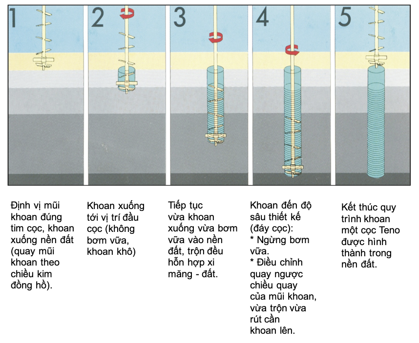 Về phương pháp cọc Teno (phương pháp khoan trộn hỗn hợp sâu): đây là phương pháp độc quyền thuộc sở hữu của công ty Tenox Kyusyu Nhật Bản.